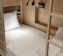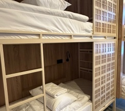 Отличный хостел! Очень чисто, симпатично и стильно. Мы приехали большой компанией 8 человек и легко поместились в семейном номере. Двухъярусные кровати оказались здесь просторными и уютными даже для взрослых (с индивидуальным светом и полочкой для вещей). А еще мне особенно понравилось взаимодействие с персоналом: все помогли, быстро и четко, с заботой и вниманием!♥️♥️♥️