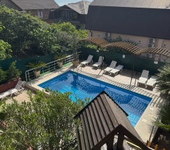 Красивый отель, с 2 бассейнами, и обильной растительностью, администратор Светлана очень приятная девушка, ночной сторож тоже очень приятный человек, понравилось все, спасибо вам, рекомендуем👍🏼👍🏼👍🏼 В номере есть все, номера очень красивые, на нижнем этаже есть кухонная зона для нарезки и подогревания, есть столовая, нам все понравилось, приедем сюда еще❤️😍😘