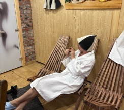 Таунхаусы все новые, оснащены до зубов, как в 5 звездочном отеле: тапочки, халаты и т.д. Огромная парковка у дома. Детям понравилась площадка, во дворе, есть ночной проектор, дети смотрели мультики. Баня большая и жаркая на дровах. Спасибо за хороший комфортный отдых, обязательно вернемся еще.