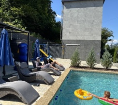 Сегодня вернулись с отдыха семьей. Отдыхали в новом комплексе в Green mile. Классно провели время, все сделано для комфортного отдыха. Хозяева все продумали до мелочей, детская площадка и проектор с подушками супер! Очень чистый, теплый бассейн с подсветкой. Мужу понравилась баня, сказал хочет такую же! Мы были в таунхаусе Грин. Все новое, современное. Можно было с собой вообще ничего не брать, там есть все!!!!! На всей территории wi-fi. Ребята молодцы !!! Процветания вам и успехов!