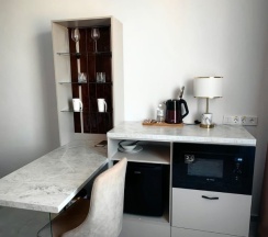 Шикарный отель! Прекрасная встреча гостей! Рядом набережная, разные кафешки. Отель новый на 9 этаже, симпатичный современный дизайн, холодильник, микроволновая печь в номере. Вода, чай, сахар, гигиенические наборы, халаты. Все было замечательно! Жаль, что наше прибывание в отеле было краткосрочным) Обязательно порекомендую своим знакомым! Благодарим!