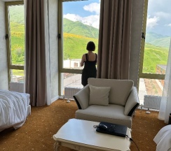 Шикарный отель с невероятной локацией. Виды невероятные. Основные туристические локации рядом. Отель новый, все отделочные материалы очень качественные. Понравилось все, завтрак на любой вкус, смена полотенец каждый день, отличный большой бассейн,правда, немного прохладный, бани, хотела взять спа, массаж. Хороший тренажерный зал. Очень хотелось бы вернуться, но дорога больше для автомобилей с высокой посадкой, конечно, самая высокая точка из возможных, горы на ладони. Один минус то, что вечерами долгое ожидание ужина из-за банкетов. В 16 ч вся красота пряталась за облаками, но каждое утро было сказано красиво.