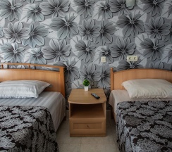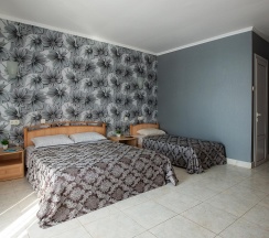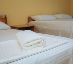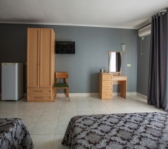 -номера оборудованы всем необходимым для комфортного проживания: двуспальная и односпальные кровати, телевизор, холодильник, кондиционер, санузел в номер.
