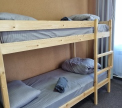 Ночевали по дороге на море , нам попался 2-этажный номер 4 местный , дети были в восторге , двухспальная кровать на втором этаже и на первом двухъярусная кровать , есть вопросы по косметике наверное это больше вопрос к возрасту самого здания. Главное Чисто уютно все необходимое в номере есть, небольшая парковка но я так понимаю места хватает всем.