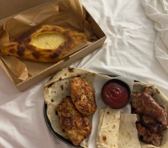 Нам очень понравился номер в гостинице, но кухня на троечку, шашлык сухой но вроде шея свинная заявлена, люля курица тоже не вкусный, суховат.