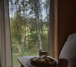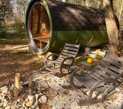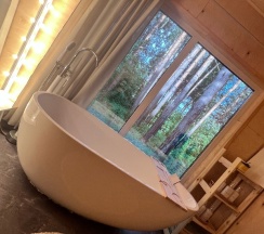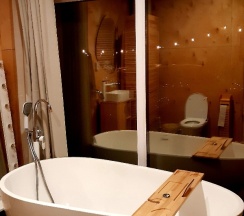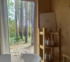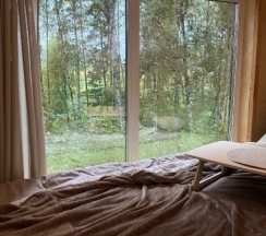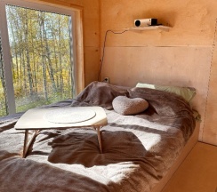 Сам домик не большой, но в нем настолько все продумано, все до мелочей.. чувствуется забота хозяйки домика, чего только стоит потрясающая ванна с видом на лес.. в домике тепло и уютно. Утром просыпаешься от пения птиц, в нет шума на улице.. советуем это место.. тишина и спокойствие..