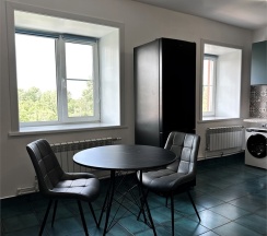 Просторные светлые апартаменты с высокими потолками, собственной кухней и санузлом. Идеально подходит для комфортного проживания вдвоем.