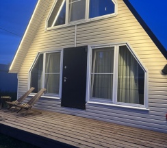 Отдыхали с семьей в треугольном доме А-фрейм. Мы с женой расположились в спальне на первом этаже, а дети спали на верху , каждый в отдельной спальне. Хочется отметить природу вокруг, мы нагулялись, грибов насобирались, в бане напарились и в воскресенье отдохнувшие поехали домой. Сразу забронировали еще выходные на октябрь!