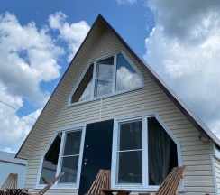 Отдыхали с семьей в треугольном доме А-фрейм. Мы с женой расположились в спальне на первом этаже, а дети спали на верху , каждый в отдельной спальне. Хочется отметить природу вокруг, мы нагулялись, грибов насобирались, в бане напарились и в воскресенье отдохнувшие поехали домой. Сразу забронировали еще выходные на октябрь!