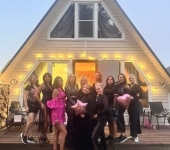 Отдыхали впервые. Компанией отмечали день рождения. Домики находятся в сосновом лесу.