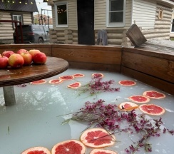Очень хорошее место,мы отмечали день рождение,все очень понравилось,есть баня,чан с грейпфрутами.Можно провести время как в двоем,так и больной компанией.Рекомендую.
