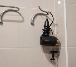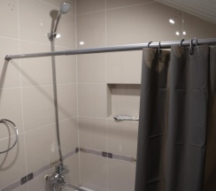 * Совмещенный санузел с душем, стиральной машиной и феном.