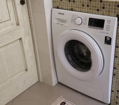 * Совмещённый санузел с душевой кабиной и стиральной машиной, что делает проживание еще более удобным.