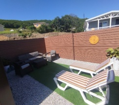 Чистый домик, есть все необходимое для приготовления еды, есть бассейн и лежаки, а также мангал. Очень красивый вид. Хорошее место для отдыха, тихо и спокойно. Встретила нас очень приятная девушка, все рассказала, показала. Нам все очень понравилось♥️♥️♥️