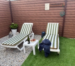 Отдыхали с 8 по 11 августа, 7 взрослых и 1 ребенок, шикарно разместились двух домиках, внутри которых очень чисто и уютно, предусмотрено абсолютно всё до мелочей, сделано с душой и для людей. Всё в точности соответствует заявленному на фото и в описании. Встретила нас милейшая Елена жарким днем со льдом, максимальная клиентоориентированность и сервис на высочайшем уровне во всех вопросах, которые возникали в процессе отдыха. Территория закрытая, с отдельным въездом только для проживающих, облагорожена. Виды морские шикарные, закаты, небо звездное. До моря минут 5 не более, пляж песчаный.
