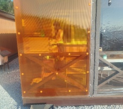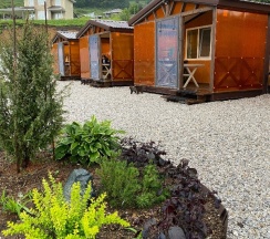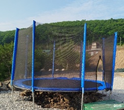 На территории есть батут, 4 домика с верандой (веранда закрывается защитными шторками при желании, например в плохую погоду)
