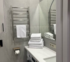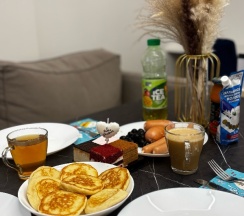 Отдыхали с 20 по 22 ноября 2025 года с семьёй. Апартаменты хорошие! Всё чисто, красиво! Комфортно! Заселение бесконтактное, без проблем! Бельё и посуда чистые! В наличии зубные наборы, чай и конфетки. Туалетная бумага правда была только 1, на всё проживание не хватило. Но мы не спрашивали, купили свою. И не было кофе, только чай.
