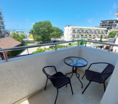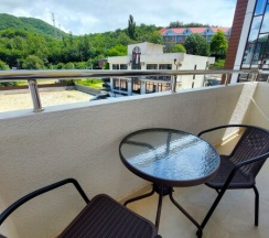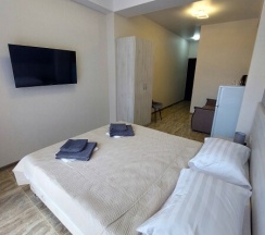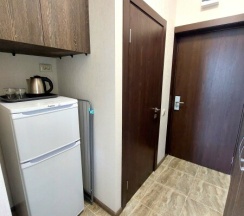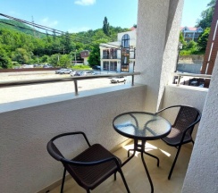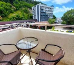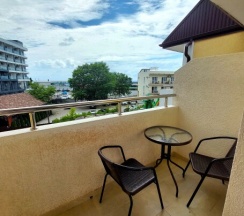 Современный и уютный номер с балконом в сторону моря(без вида), полностью укомплектованный всем необходимым. Вмещает от 2-х до 3-х человек, создавая комфортные условия для отдыха.