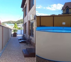 - на территории приятный ухоженный двор с бассейном и кухней