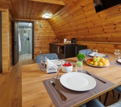 Этот современный двухуровневый A-frame коттедж предлагает уникальное сочетание уюта и функциональности, идеально подходящее для комфортного отдыха. Внутреннее пространство тщательно спланировано, чтобы обеспечить максимальный комфорт и удобство для гостей.