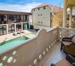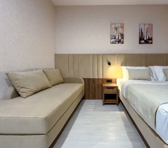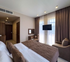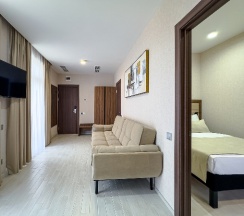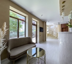 Приветливый администратор провела в номер всё рассказала. Гостиница чудесная! В номере чистота, всё новое, есть своя столовая - всё готовится вкусно с душой. Большой и глубокий бассейн с подогревом и чистой водой.Обязательно приедем ещё!!!