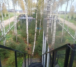 Интересное тихое место. Правда домиков натыкано, но благодаря зеркальной поверхности они плохо заметны среди деревьев. Интерьер домика "на дереве" очень достойный и спокойный. Есть проектор, можно смотреть фильмы из сети. Правда домик оказался на двух хозяев. Об этом узнали только по приезду. Неприятная неожиданность. Администрация идёт на уступки и в процессе проживания можно сменить домик, ранее данные обещания по аренде бани по акции исполняет. Приятный отдых.