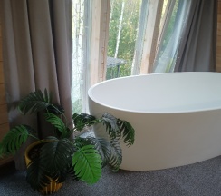 Отдыхали сутки в мини домике с джакузи, были настроены на отдых и мелким минусам не придавали значение. Но я перечислю, что можно было бы улучшить: 1. Парковка у домика, по факту место под нее есть, но она неухоженна. 2. Перебои с Wi-Fi, мобильный интернет работает с трудом и стабильный Wi-Fi бы не помешал. 3. На территории не хватает хотя бы какого нибудь кафе, где можно было бы взять вкусный кофе/лимонад, какой нибудь десерт. 4. Коммуникация с персоналом, а это реагирование администратора на запросы. 5. И не помешало бы немного улучшить качество уборки, все же есть моменты которые тяжело не заметить. Провести ревизию по сломаным/разбитым вещам, а это треснутая посуда, убрать пыль, паутину и прочее. 6. Повесить сетки на окна и предупреждать гостей о том что на территории много ос (в этом плане нам «повезло» и у мужа пошел отек/аллергия, что пришлось прибегать к помощи специалиста). В целом впечатления остались хорошие, тихо, уютно, без посторонних глаз, не шумно. Вернулись бы сюда еще и хотели бы увидеть улучшения! Идея с зеркальными домиками очень хорошая, территория ухоженная, чистый воздух. По территории ходят олени, но удалось увидеть их только при заселении возле домика админа.