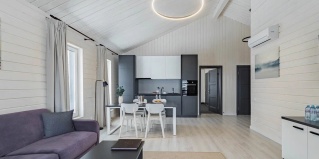 Коттедж премиум класса оформлен в европейском стиле с отдельным входом и панорамными окнами из которых открывается великолепный вид. У коттеджа есть своя терраса, 2 изолированные спальни с удобными кроватями "king-size", которые по запросу трансформируются в две раздельные и просторная дизайнерская кухня-гостиная оборудованная всем необходимым, для больших семейных вечеров с выходом на собственную террасу