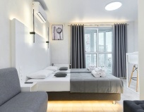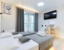 Интерьер, мебель, сантехника, - всё новенькое, с иголочки. Стиральная и посудомоечная машины, необходимая посуда - само собой. Наличие халата и тапочек приятно порадовало. Очень удобная кровать, позволившая от души выспаться после продолжительного дня на ногах. Шумо- и светоизоляция в квартире хорошая. Телевизор с большим экраном, на котором со вкусом можно посмотреть вечером кино, - весьма приятное дополнение. Вайфай работает на очень высокой скорости. Словом, понравилось всё безоговорочно. Буду рад при случае остановиться здесь вновь!
