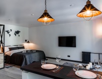 Номер мега уютный, качественный ремонт, соответствует фото, есть все: и плита, и холодильник, и микроволновка, даже кофе машина, правда капсюльная. Зато было 2 капсулы. Мелочь, но приятно! И