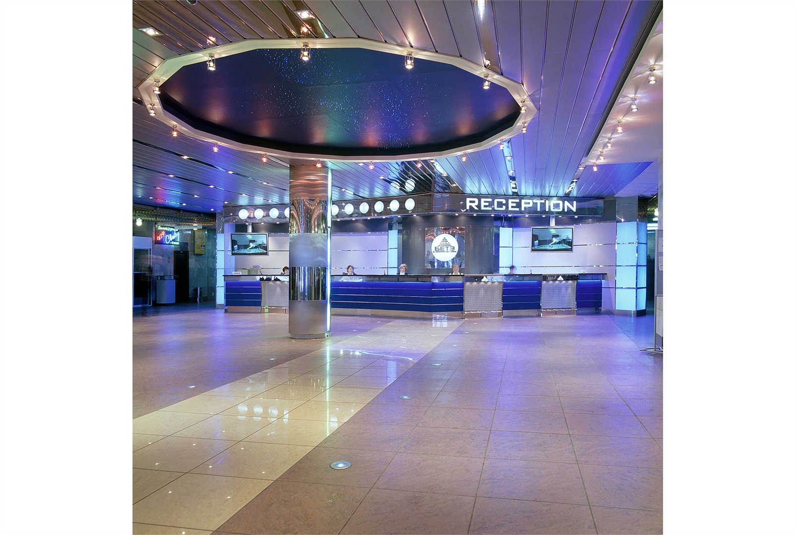 В гостинице расположены магазины, ночной клуб, бары и кафетерии, салон красоты. На 2-ом этаже - ресторан «Бета», где проводится завтрак, обед, ужин по системе "Шведский Стол". В гостинице «Бета» к Вашим услугам предлагаются банкетные залы вместимостью от 10 до 500 персон для проведения корпоративных мероприятий, торжественных банкетов, детских праздников, юбилеев и свадеб.