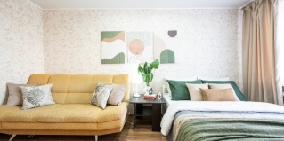 - В гостиной для комфортного отдыха предусмотрено 4 спальных места: отличный двуспальный диван и двуспальная кровать с ортопедическим матрасом. Журнальный стол, ЖК-телевизор и высокоскоростной Wi-Fi помогут скрасить вечер.