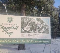 Отдыхали в санатории Кедровый бор в августе 2025 с мамой, остались довольны! Номер после ремонта, приятно оформлен, в номере есть всё необходимое, уютно, комфортно, тепло, просторный балкон с сушилкой для белья. В столовой трёхразовое питание, всё вкусно и разнообразно. Персонал приветливый, к гостям относятся с заботой и пониманием! Отличный бассейн, очень понравилась аквааэробика! Шикарный кедровый лес в перемешку с соснами, воздух чистейший, рядом озеро с пляжем! Обязательно вернёмся сюда ещё!