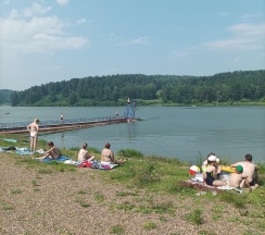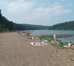 Платный пляж и свежий воздух, приезжаем регулярно катаемся на сапах. Отличное место. Привозим с собой шатер от солнца. Рыбалка запрещена. Пляж отсыпан ближе к Пантогам водоросли в воде. Прокат сапов есть, шашлык.