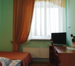 Уютный номер для размещения одного или двух человек. Площадь номера от 12 до 12,7 м2. Номер оборудован необходимой мебелью и бытовой техникой для комфортного проживания. В каждом номере ТВ, холодильник, шкаф, 2 раздельные кровати, рабочая зона, бесплатный Wi-Fi, санузел общий на два номера (блок).