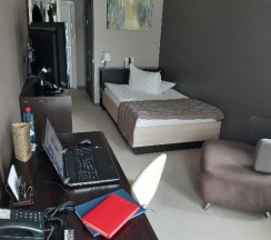 Хороший отель, вежливый персонал. Все чисто, уютно, вкусно. Бронировали 2 номера на 2 ночи - один перед свадьбой 1местный, второй соответственно после свадьбы двухместный по акции свадебный. Смутило, что буклеты стриптиз-баров лежали как в одноместном, так и в двухместном свадебном)) очень интересно конечно, за это минус звезда)