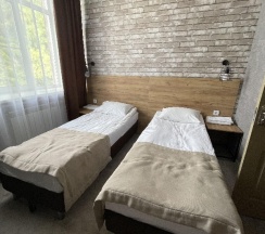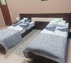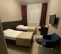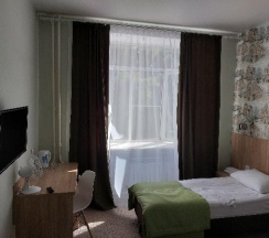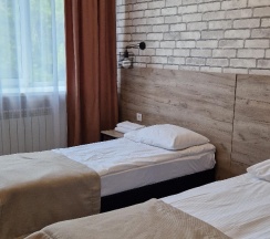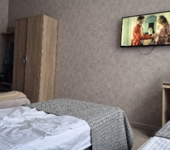 Чистая гостиница. Мы бронировали номер на трех человек с душем в номере стоимость 4350р. В номере для гостей: чайник, холодильник, тв, необходимая посуда, вентелятор настольный, на каждого гостя набор полотенец. Вежливый персонал. В кофе есть ассортимент блюд покушать. Парковка большая. Недалеко есть магазин.