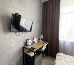 Недорого, в номере был чайник, кружки, телевизор. Очень неудобные кабинки туалетов. Гладилка там же, где умывальники. Есть кафе, но не вся еда вкусная (готовая, разогревается).