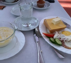 На внешний вид гостиница выглядит немного потасканной, однако внутри помещение обставлено вполне прилично и даже приятно. Обслуживающий персонал вполне порадовал, достаточно добрые и отзывчивые люди. Сама гостиница представляет собой "общежитие" но очень больших размеров. В главном холле есть бар, различные развлечения по типу боулинга и бильярда, так же есть пристроенные рестораны в одном из которых проходит завтрак. Сам ресторан неп дозой однако в данном помещении прохладно по утрам. Ужин проходит в баре, за небольшими но удобными столиками. Еда которую подают очень вкусная а главное сбалансированная так, что вы получаете всё так необходимые для организма белки, жиры, углеводы и различные витамины.