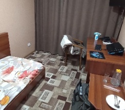 Жил в одноместном номере на 5м этаже, в номер каждый день прибирают и сам номер очень тёплый. В наличии есть телевизор и маленький холодильник. Так же есть графин в который можно набрать воду, только вот он не помещается в раковину, что очень усложняет данную задачу. Душ не плохой, однако сливы практически не работают (в командировке был вместе с коллегой у него была такая же проблема) , по итогу после долгого душа у вас будет вся уборная в воде, которая будет стоять, и вода эта будет грязная и уходить будет всю ночь.