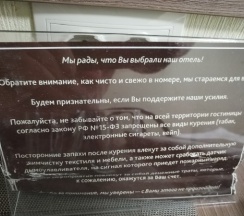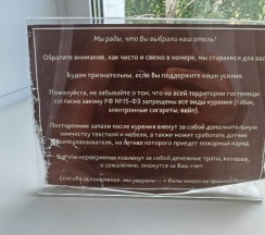 Единственный минус - покурить надо спускаться вниз на улицу. Но это общее требование, так что придется смириться
