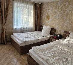Забронировали гостиницу по телефону..по приезду были удивлены номером и уютен и чистенький и чай с сахаром.. чайник..тапочки шампунь..мыло..гель..душевая кабина.. халаты.. что еще нужно для ночёвки...администратор миленькая дюймовочка..продлить номер не удалось --все номера были уже расписаны..к сожилению...