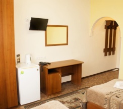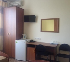 В номере: двуспальная кровать, кондиционеры, холодильник, эл.чайник, шкаф-горка с набором посуды, в наличии халаты, туалетные принадлежности, тапочки.