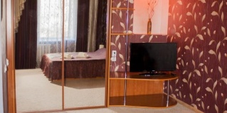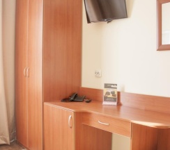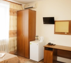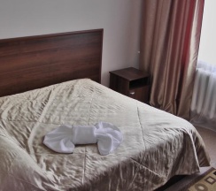 В номере: двуспальная кровать, кондиционер, холодильник, эл.чайник, шкаф-горка с набором посуды, в наличии халаты, туалетные принадлежности, тапочки.
