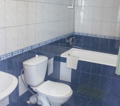 Санузел совмещен с ванной (душевой). В наличии туалетные принадлежности, халаты.
