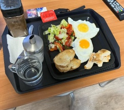 Утром предоставили завтрак(очень вкусный), была каша, чай, и пироженки(спасибо большое)