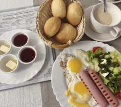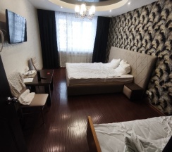 На четыре с минусом. Придорожный отель. Из плюсов. Три вида завтраков на заказ. Готовят по-домашнему. В этом же кафе обеды и ужины по приемлемой стоимости. Просторный номер, большая кровать, чистое бельё, тапочки. Два окна, хороший напор воды в душе, работающий кондиционер, холодильник, большой телевизор. Из минусов: интернет до 1,5 Мб/с, пару лампочек в люстре неработающие, лейку душевую нужно заменить и поставить в ванной жидкое мыло для рук и ёршик для унитаза.