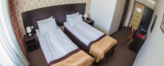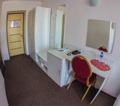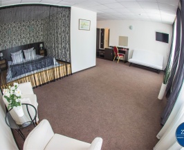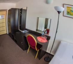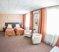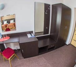 В номерах: 2 кровати,2 прикроватные тумбочки, 2 ночных светильника, 2 настенных бра, телевизор, телефон, холодильник, рабочий стол, стул, зеркало, шкаф для одежды, душевая комната.