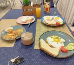Завтраки удивительно вкусные, как у бабушки, по-домашнему - и сервировка, и подача, всё хорошо. Очень добрая повар, угощала ребёнка конфетками, улыбается всегда, жаль не спросила как зовут. Очень приятное отношение.