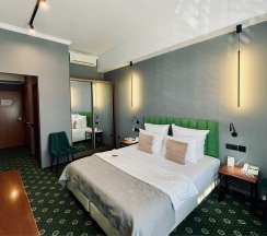Предполагает размещение одного или двух человек. Уютный интерьер, классическая мебель, удобная двуспальная кровать. Для удобства гостей в комнате - телевизор, телефон, сплит-система. Ванная комната оснащена душевой кабинкой, феном, косметикой, комплектом полотенец, тапочки, халат. В номере имеется мини-бар, чайная станция и сейф. В стоимость проживание входит посещение фитнес-зала.